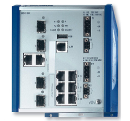 Switches misión crítica de -40°C a +85°C. Entrada de poder VDC/VAC. IEC 61850-3 y IEEE 1613 (Sub estaciones). Hasta 10 puertos 2 o 3 Gigabit, el resto Fast-Ethernet, alternando entre Fibra y Cobre. Protocolos de redundancia: MRP, HSR, PRP, PTPv2, HiPer-Ring.
